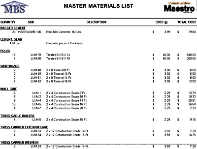 Example- Materials List